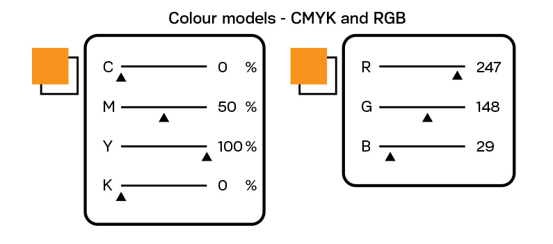 A system to create a colour - CMYK (0-100), RGB (0-255), Pantone (swatch name - LAB Values). Any colour model can be used within any colour mode, and the chosen formula/recipe will be displayed based on the selected colour mode and Colour Profile.