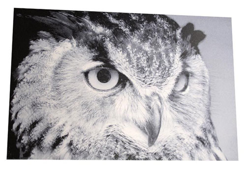 Greyscale image printed using only white onto a black substrate