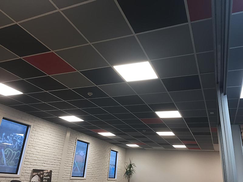 At Adgraphix, we use multiple printing technologies, including water-based latex, to print directly onto suspended ceiling tiles before installation. These tiles can be standard or acoustic, making them a perfect choice for enhancing sound control in open spaces. For smooth ceiling surfaces, we print onto self-adhesive media, tiled into strips and applied just like a wall mural for a seamless, stunning design.