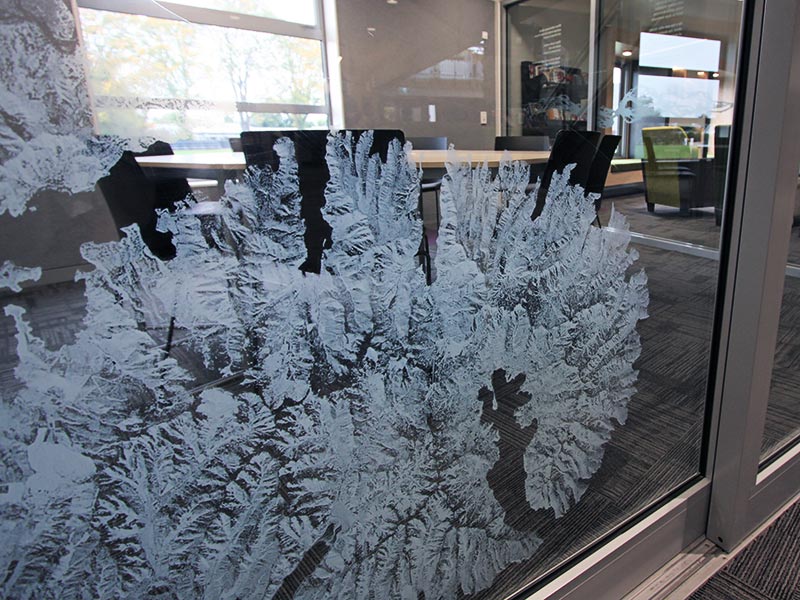 Frosting / Etching: Self-adhesive films that offer a cost-effective way to decorate glass and provide privacy. Frosted films are often used for decorative borders or health and safety compliance but can also incorporate company logos or custom designs. Available in a variety of colours and can also be printed in full colour. Frosting can cover full windows for complete privacy.